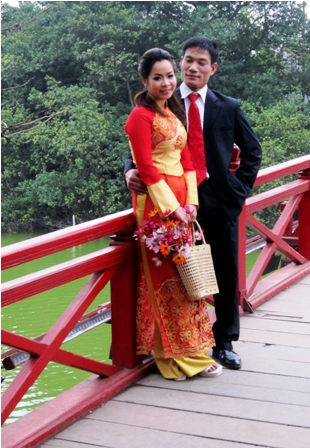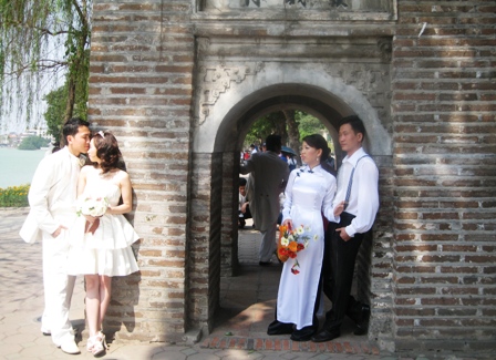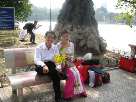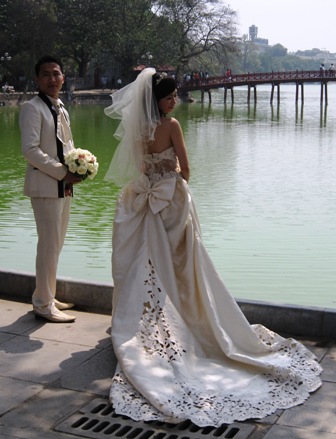 دریاچه، آتلیه عکاسی شهر است و به خصوص برای زوجهای جوان یک مکان رویایی برای ثبت خاطرات پیوند آسمانی شان... در روزهای عادی هم کم و بیش چنین عکس هایی می توان ثبت کرد اما اگر صبح روز یکشنبه در هانوی باشید و کنار دریاچه، قدم از قدم که بردارید، عروس و داماد ها را مشاهده می کنید که با یک یا چند دست لباس آمده اند عکسهای عروسی شان را بگیرند... لذت بخش است... فقط همین!