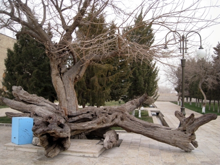 تنه این درخت مقدس و صندوق آبی رنگ، برای اهدای نذورات است.