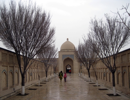 حوزه علمیه بانوان؛ از آن جا که ورود آقایان به داخل حوزه ممنوع است، تنها به مدرسه وارد شدم؛ گپ زدن با مدیر مدرسه و بانوان طلبه یکی از بهترین تجارب سفر به بخارا بود.