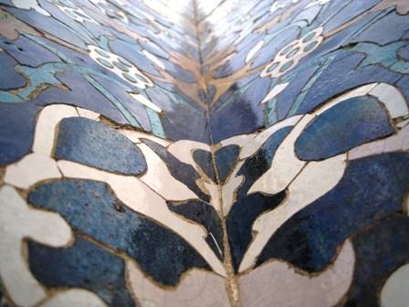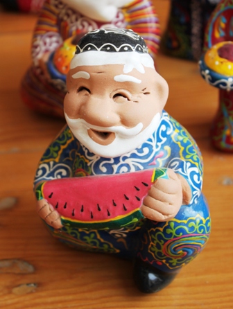 مردی که روی سهپایه نشسته، صاحب مغازه سمت راست تصویر است. سرامیکهای نو و عتیقه میفروشد. مرد نازنینی بود. کمی گپ زدیم؛ دو بار برای زیارت به مشهد آمده بود. به طور کلی، اکثر مردم آسیای میانه از شهرهای ایران، تهران و مشهد را میشناسند؛ و بسیاری از آنها بیش از یک بار به مشهد سفر کردهاند. یا برای زیارت علی بن موسی الرضا یا برای درمان. در گزارش دوشنبه از این موضوع بیشتر سخن خواهم گفت.
