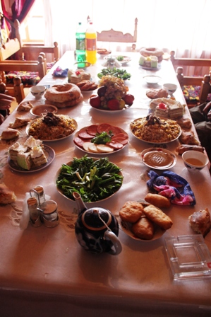 سفره هفت سین ما در هتل ازبکستان - فقط سبزه کم داشت که عکسش را گذاشتیم.