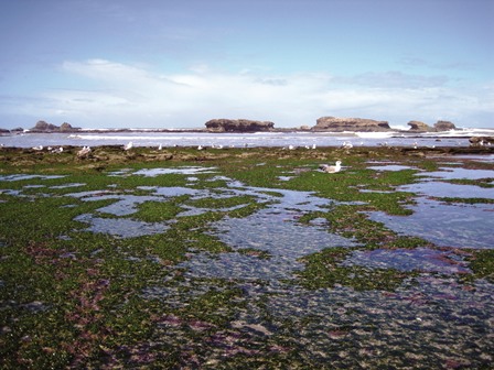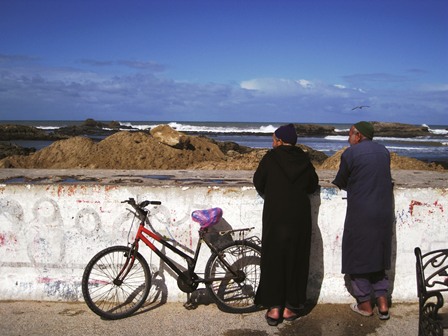نزدیک ساحل، مردم شهر بیشتر از گردشگران به چشم میخورند. اولین چیزی که به چشم میآید، پوشش مردم محلی است که برخلاف کازابلانکا، لباس سنتی به تن دارند؛ مردان بیشتر «جلابه» به تن دارند و زنان «قفطان»؛ جلابه، لباس بلند تک رنگ یا راهراهی از پشم شتر یا پنبه است که برای محافظت از آفتاب، باد، هجوم شن و همچنین سرما استفاده میشود. قفطان که از تنوع رنگ و جنس بیشتری برخوردار است، پوشش سبک وزن و گشادی برای مقابله با گرماست.