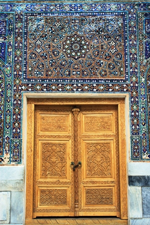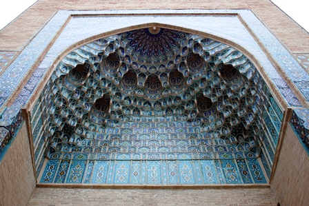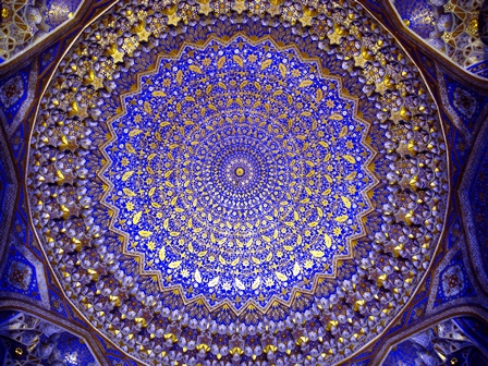 شاهکار بنا، فضای محراب و گنبد آن است. رویای خیرهکنندهای از بازی رنگهای آبی و طلایی... هرچند در آرامگاه خانوادگی گورکانی از آن همه زیبایی لذت برده بودم اما، حضور تیمور نمیگذاشت شادی به رگهایم بدود. اینجا دیگر قید و بندی در کار نبود. به وجد آمده بودم از آن همه جلال و شکوه... داخل مدرسه موزهای برپا بود و چند فروشگاه صنایع دستی هم به چشم میخورد. در طول سفر به بخارا و سمرقند، آن قدر مدرسه و مسجد خواهید دید که کمکم نقوش زیبای کاشیها هم برایتان تکراری خواهد شد اما، مدرسه طلاکاری چیز دیگریست... عجیب چشمنواز است و بیننده را به تحسین سازنده آن وادار میسازد.
