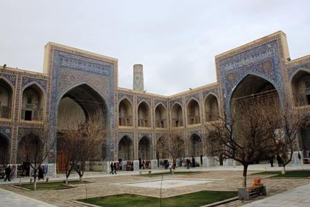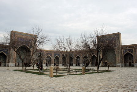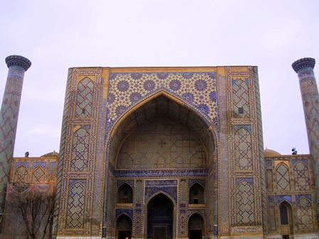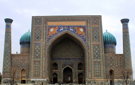 برگشتیم به ریگستان. وجه تسمیه میدان، ظاهرا به دلیل وجود رودی بوده که از این حوالی میگذشته و در مسیرش ریگهای بسیاری بر جای میگذاشته است. سه مدرسه معروف سمرقند، در این میدان قرار دارند. مدرسه الغبیگ، مدرسه شیردار و مدرسه طلاکاری. اگر بخواهید بدون دیدن تصویر، میدان را تصور کنید، باید چیدمان سه بنای معروف میدان نقش جهان را به خاطر بیاورید. مدرسه شیردار به جای کاخ عالیقاپو، مدرسه طلاکاری به جای مسجد شاه عباسی و مدرسه الغبیگ به جای مسجد شیخ لطفالله؛ البته اینها خیلی نزدیکتر و صمیمانه کنار هم جای گرفتهاند... الغبیگ، خانقاه و مدرسهای ساخته بود که در قرن هفدهم تخریب شدند. بعدها حاکم سمرقند، مدرسه شیردار و مدرسه طلاکاری را جایگزین آنها نمود.
