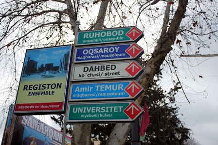 دور تا دور میدان در حال مرمت را نوار کشیده بودند. کف میدان را داشتند سنگفرش میکردند. به گمانم سنگفرش، جلوه بسیار دلپذیری به میدان بدهد. به باجه بلیتفروشی رفتیم و از نرخ بالای ورودیه مجموعه، شگفتزده شدیم. بلیت ورودیههای بخارا، این مزیت را داشتند که از زمان خرید 3 روز فرصت بازگشت و دیدار مجدد را در اختیار گردشگر میگذاشتند. اینجا از این خبرها نبود. شارژ دوربین من هم تمام شده بود و ترجیح دادیم فردا اول وقت دوباره بازگردیم. خیابان را به سمت میدان امیر تیمور پایین آمدیم. پیادهرو خلوت و تمیزی پیش رویمان بود. رستورانها و غذاخوریهای متعددی در خیابان وجود داشتند. جالبترین تابلو خیابان هم مربوط به یک رستوران بود که لب گور نام داشت! و یک تابلوی خوشآمدگویی بر سردرش آویزان بود که روی آن نوشته بود به لب گور خوش آمدید!