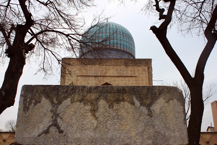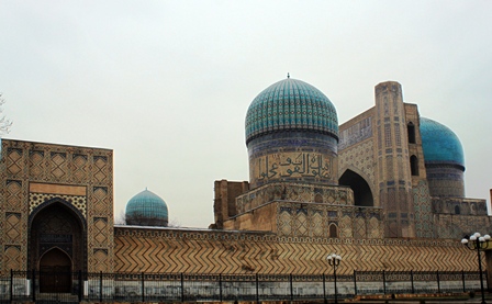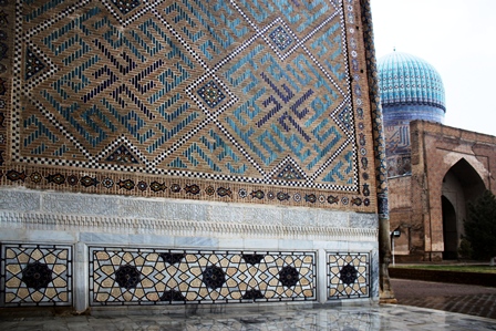 به مجموعه شاه زنده که رسیدیم، نفس در سینهمان حبس شد... یک چیزی میگویم از معنای کاشیکاری افسانهای، یک چیزی میشنوید... شاهکار غریبیست. در تمام زندگیم هیچگاه آبی فیروزهای را این گونه درخشان و افسونگر ندیده بودم! فقط یک لحظه تصور کنید چه منظرهای میتواند در چشمان آشنا به گنبدهای فیروزهای و خو کرده به کاشیهای زیبای اصفهان شگفتی بیافریند؟! اوج هنر کاشیکاری ایرانی اینجاست! در شاه زنده! دیدنیترین، باشکوهترین و چشمنوازترین آرامستان جهان. پیشتر، خیال میکردم آرامستان پرلاشز پاریس لنگه ندارد... باید آن بناهای فیروزهای را از نزدیک ببینید... گیج و مبهوت به شاهکار پیش رویمان مینگریستیم. در دقایق اول توان عکاسی هم نداشتیم! فقط مانند بچهها، هیجان زده، هر چیز زیبایی را به هم نشان میدادیم. از زوایای مختلف به آن نگاه میکردیم و این رویه تکرار میشد... نگهبان مجموعه، وقتی فهمید از ایران آمدهایم، گل از گلش شکفت. کمی باهم گپ زدیم؛ هرچند دائم مجبور میشد حرفش را نیمه تمام بگذارد تا سوال رهگذری را پاسخ دهد اما، محبت را در حق ما تمام کرد. ابتدا ما را به پشت بام بنایی برد تا از مسجد بیبی خانم عکاسی کنیم، بعد هم گفت از همان راهی که آمدید برگردید که ورودیه نپردازید.