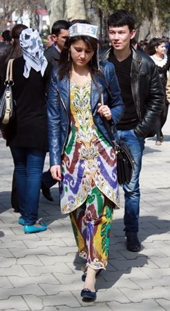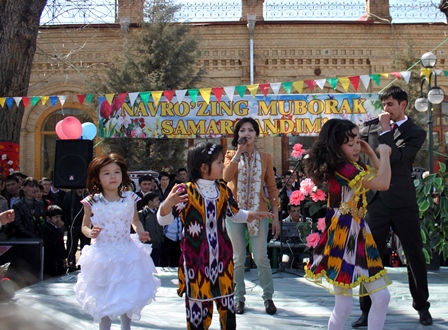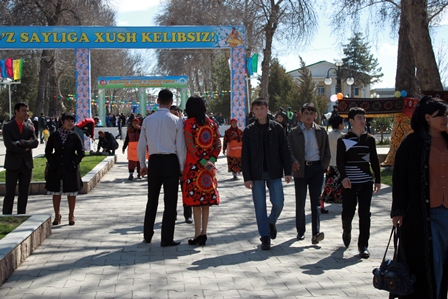 دیگر بیش از چند ساعت تا زمان حرکت قطار به سمت تاشکند نمانده بود. رفتیم که دانشگاه سمرقند را بیابیم و در صورت امکان با دانشجوها گپی بزنیم. راننده ما را در خیابانی نزدیکی دانشگاه پیاده کرد و گفت: «راه مَحکَم!» معادل تاجیکی جمله «راه مسدود است!» چند بار حرفش را تکرار کرد تا متوجه شدیم داستان چیست. پلیس خیابان را بسته بود. هنوز نمیدانستیم در سمرقند از 3 روز پیش از نوروز، جشن آغاز بهار، برپا میگردد. وقتی به خیابان تزئین شده وارد شده و انبوه مردم شهر را آراسته در لباسهای نو با طرحهای سنتی دیدیم، غرق لذت شدیم. بهتر از این نمیشد! نادانسته به خوبترین جای ممکن رسیده بودیم. دانشگاه میخواستیم و تماشای بهتر از آن قسمتمان شد! جای سوزن انداختن نبود. مردم شهر، پیر و جوان، خرد و کلان، دسته دسته از راه میرسیدند. گروههای مختلف موسیقی در حال اجرا بودند و مردم گروه گروه مشغول رقص و پایکوبی...