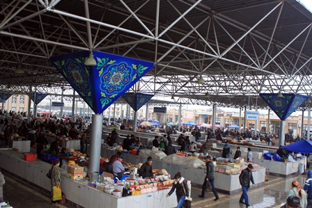 بیرون آمدیم و زیر باران راه مسجد را در پیش گرفتیم. سر راه به بازار محلی سمرقند رسیدیم. محلیها به آن سیاب بازار میگویند. شاید بازار هم نامش را از افراسیاب وام گرفته باشد!
