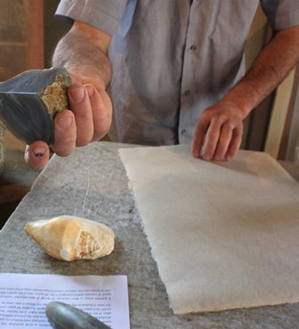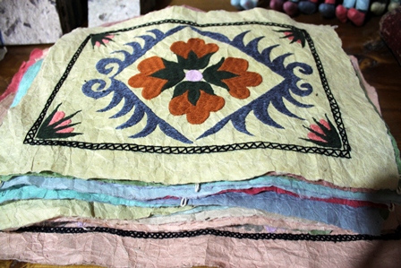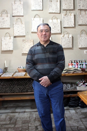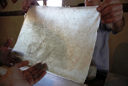 آقای ظریف شخصا پابهپای ما آمد و مراحل تهیه کاغذ را توضیح داد. کاغذ سمرقندی را از پوست درخت توت تهیه میکنند. میگویند این کاغذ 2000 سال عمر میکند. از آنجا که چوب درخت توت فسادناپذیر و برای موشها و کرمها غیرقابل هضم است، هیچ چیز نمیتواند به آن آسیبی وارد کند. مزیت دیگر، زرد رنگ بودن کاغذ است که به طور طبیعی مانع از آزار و خستگی چشم میشود.
