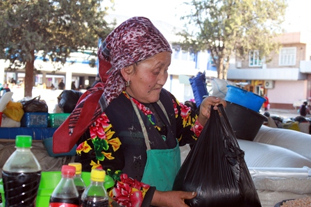 رفتیم کولهپشتیها را از هتل تحویل گرفتیم؛ از سحیبا، کارمند وظیفهشناس و مهربان هتل خداحافظی کردیم و به سمت ایستگاه به راه افتادیم. وقتی رسیدیم هنوز بیش از یک ساعت تا حرکت قطار وقت باقی بود. برای خرید آب معدنی گوشه و کنار را میگشتیم که خیلی اتفاقی به یک بازار محلی رسیدیم. به گرامی مردمان زحمتکش سمرقند... به راسته نان فروشان و نان سمرقندی...