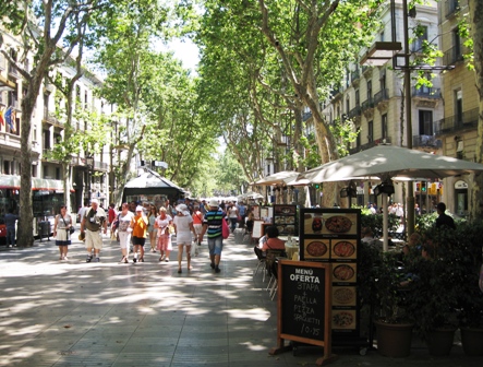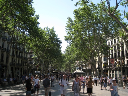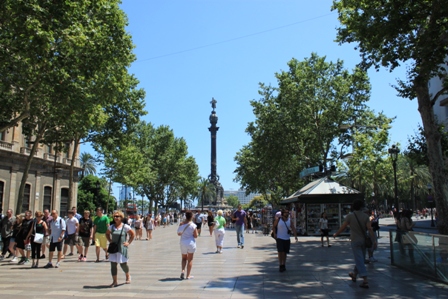 اولین تصویر بارسلون؛ میدان کاتالونیا – ابتدای خیابان رامبلا؛ به عرض پیاده روی چهارباغ عباسی اضافه کنید، از قطر درخت هایش بکاهید، از ماشین ها فقط اتوبوس ها را نگه دارید و یک عالم توریست و هنرمند نقاش در نظر بگیرید تا رامبلا در ذهنتان بنشیند. بعدا دوباره به این خیابان باز می گردیم...