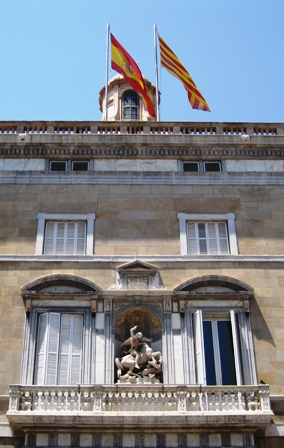 پرچم سمت راست، پرچم کاتالونیا و پرچم سمت چپ، پرچم اسپانیاست. در تمام شهر هر جا پرچمی افراشته شده، هر دوی اینها کنار هم قرار گرفته اند. اهالی شمال شرق اسپانیا و بخشی از جنوب فرانسه را کاتالان می نامند. کاتالانها اکثرا کارگر و کشاورز بوده اند که با اشرافیت و حکومت مرکزی به مقابله برخاسته اند. گرایش جدایی طلبی دارند و کاتالونیا را از سال ۲۰۰۶ به منطقه خودمختار تبدیل کرده اند.