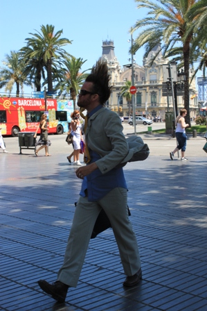 نرسیده به میدان کریستف کلمب، محل ازدحام آدم - مجسمه های خلاق بارسلوناست.